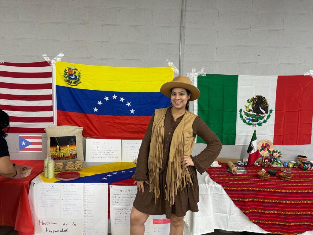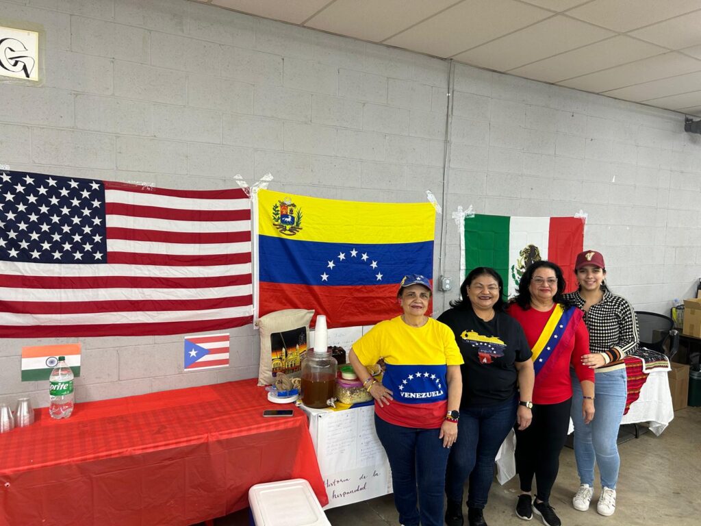 Por Venezuela llevaron la Bandera de 7 Estrellas también estampada en las franelas una de ella con la estampa de la virgen de la Chinita, y el Mapa, también estuvo presente luciendo sus atuendos la reina de la virgen de la chinita en el estado Georgia